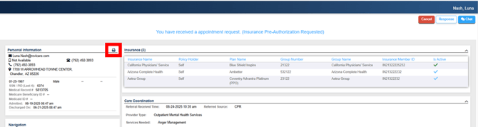 Export: To export a printer-friendly version of the referral and all the attached information, recipients can select the Printer Icon, located next to “Personal Information” in the top left of the page.